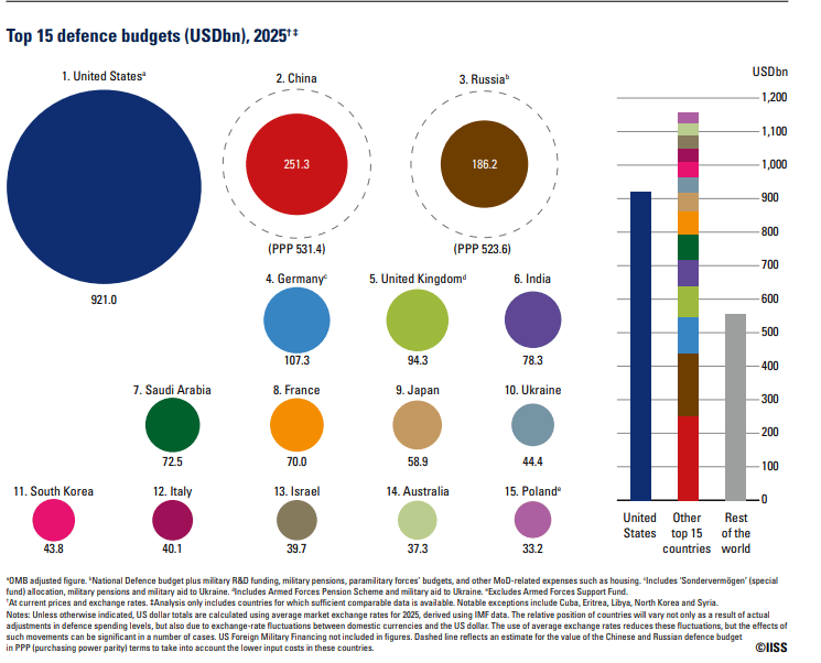 Global military expenditure reached $2.63 trillion in 2025, up from $2.48 trillion the year before.