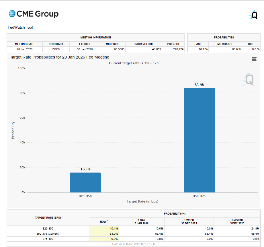 As of Friday, the CME FedWatch Tool showed just a 15-17% chance of a cut in January, down from 35% before the jobs data. More importantly, expectations for total 2026 rate cuts dropped from three (75 basis points) to two (50 basis points), with the first cut now not expected until June at the earliest.