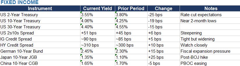 US fiscal trajectory / debt spiral | High | 8 | ↑ Rising | Overweight gold, underweight long bonds |