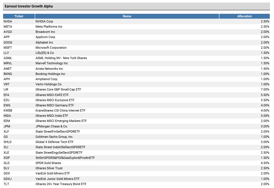 Asset Allocation - Earnout Investor Growth Alpha Portfolio