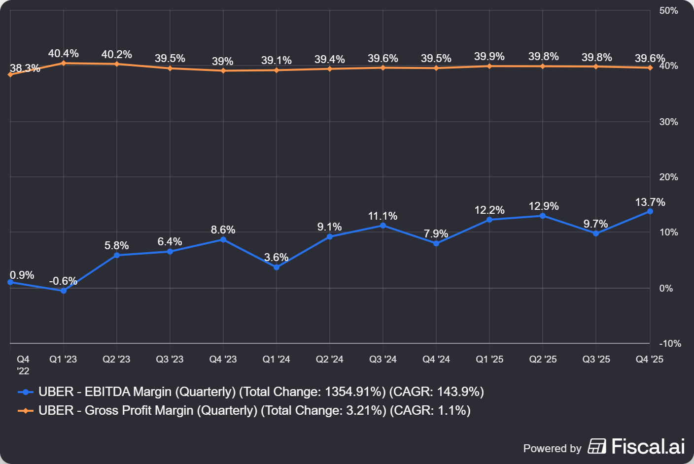 The profitability trajectory is what matters most. Delivery became profitable in 2023 and margins are improving as the business scales and higher-margin revenue (advertising, Uber One subscriptions) grows faster than lower-margin delivery commissions.