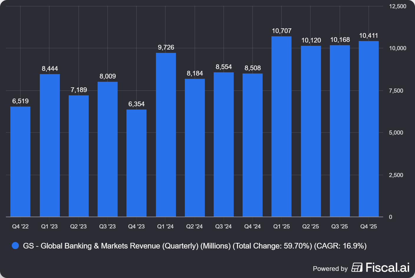 Q4 showed both the pain of their misadventure into consumer banking and the promise of their pivot. They took a $1.68 billion loss offloading the Apple Card to JPMorgan. They retreated completely from the consumer banking market. But investment banking fees surged 25%, equities trading jumped 25% (beating estimates by $610 million), and CEO David Solomon says their advisory backlog hit a four-year high.