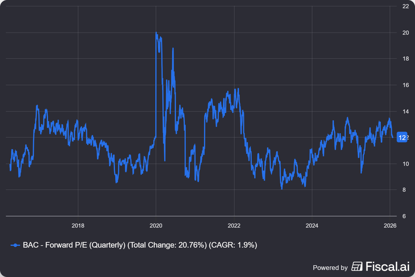 They're big like JPMorgan but without the market-leading positions. They have Merrill Lynch but it's not growing as fast as Morgan Stanley's wealth platform. Investment banking is stuck in neutral while rivals accelerate. The bull case is that they’re a cheaper value play (trading around 11x earnings) and pay a 2% dividend. If deal activity rebounds broadly, they participate. But at the moment, they're not leading anywhere.