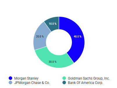 40% Morgan Stanley, 30% Goldman, 20% JPMorgan, 10% Bank of America