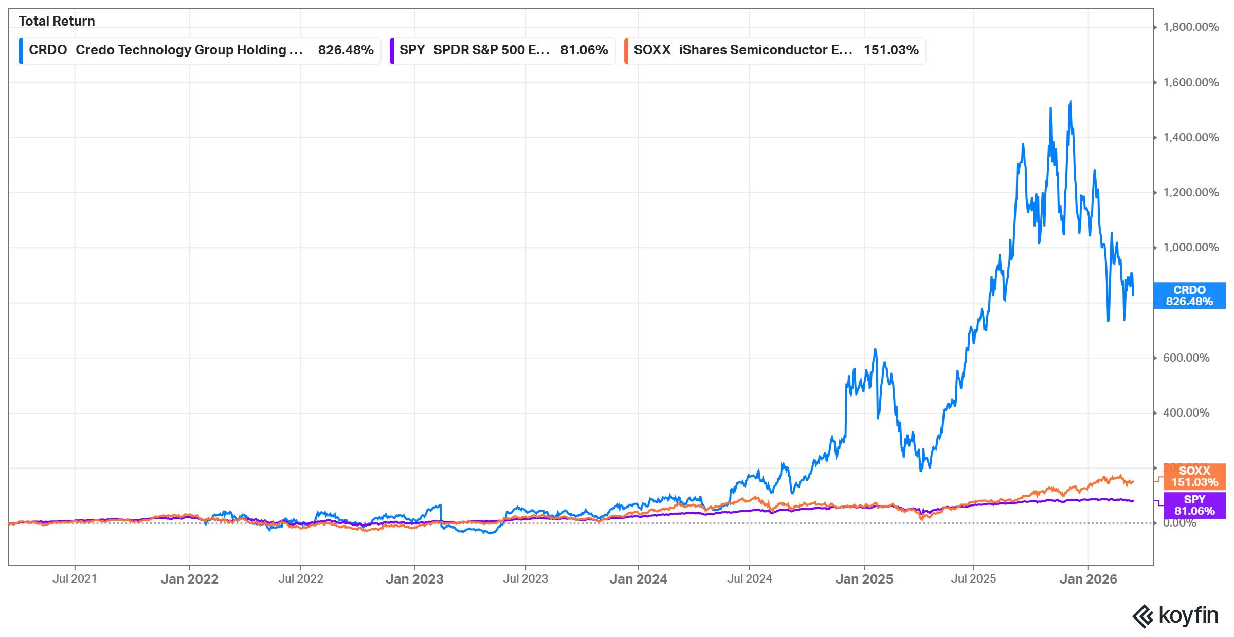 CRDO vs SPY vs SOXX performance - Koyfin