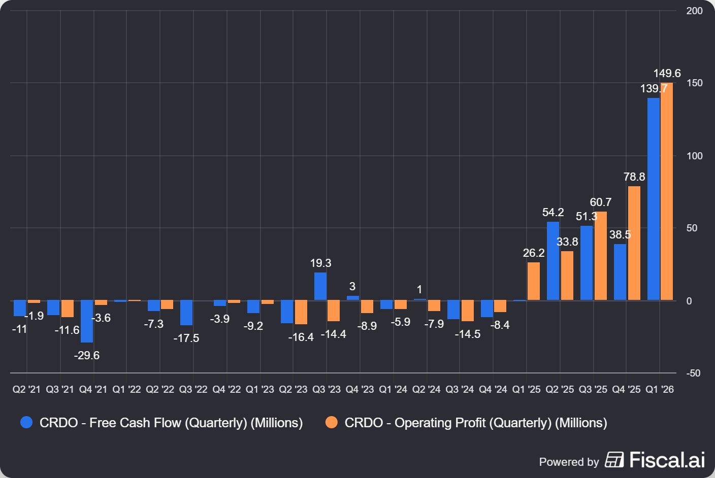 FCF and Operating Profit CRDO - charted by fiscal.ai