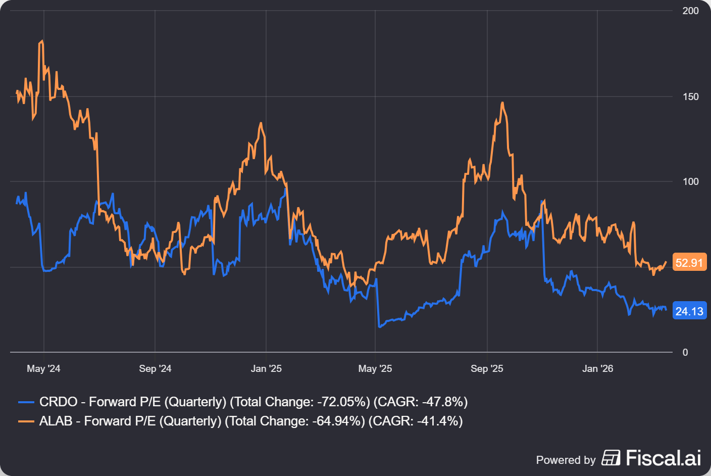 CRDO vs ALAB Forward P/E - fiscal.ai